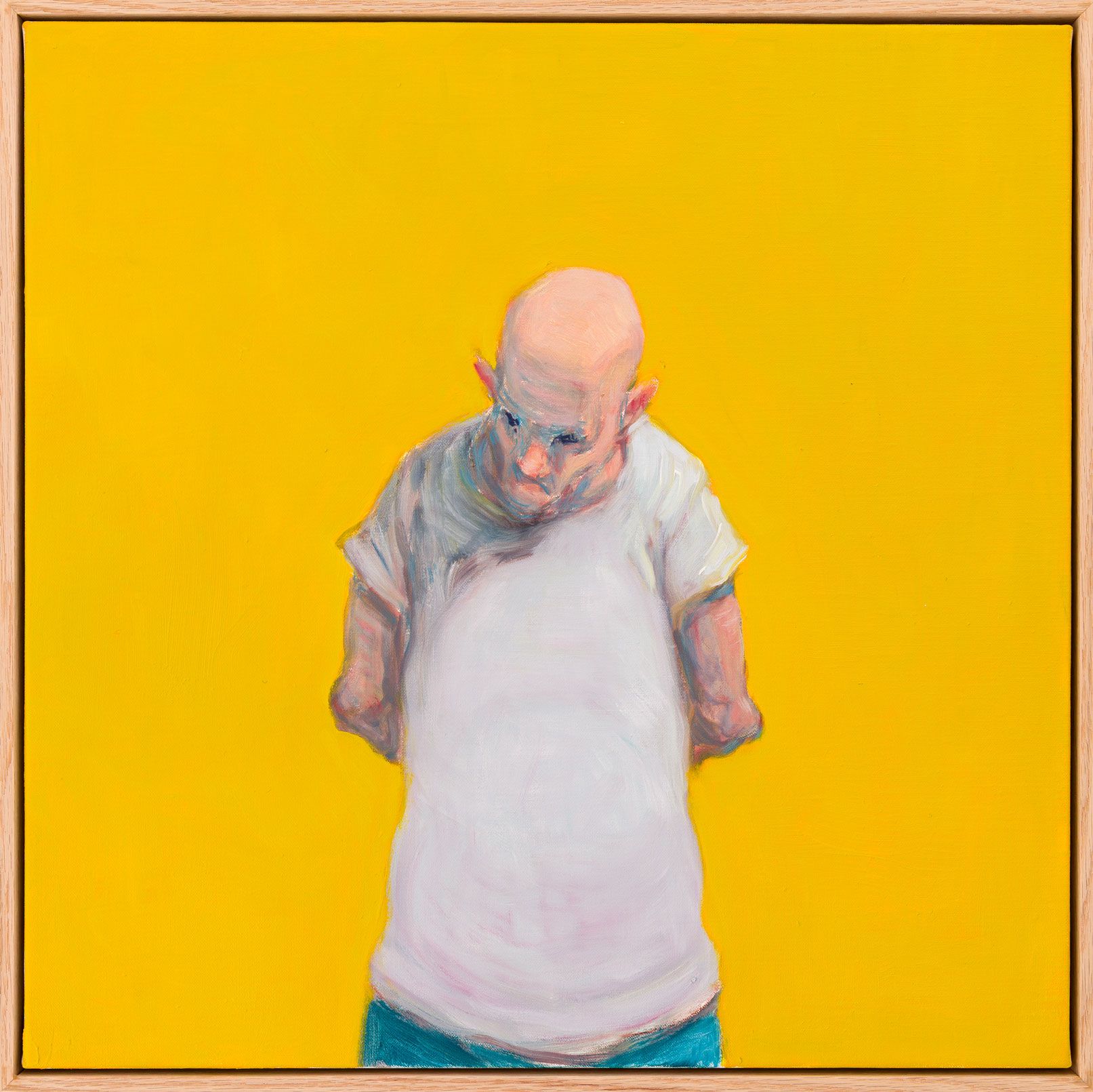 Michael Kvium *1955 fremmaner i sine malerier et slags grusomhedens teater med repræsentanter for menneskeheden, idet han viser os “Den skinbarlige sandhed.” Kvium afprøver grænserne for, hvor langt man kan gå, hvad angår råhed og grotesker i vores samtid. Hermed bevarer han forbindelsen mellem værk og beskuer. Det er ikke Kvium, der er noget i vejen med. Det er tiden!