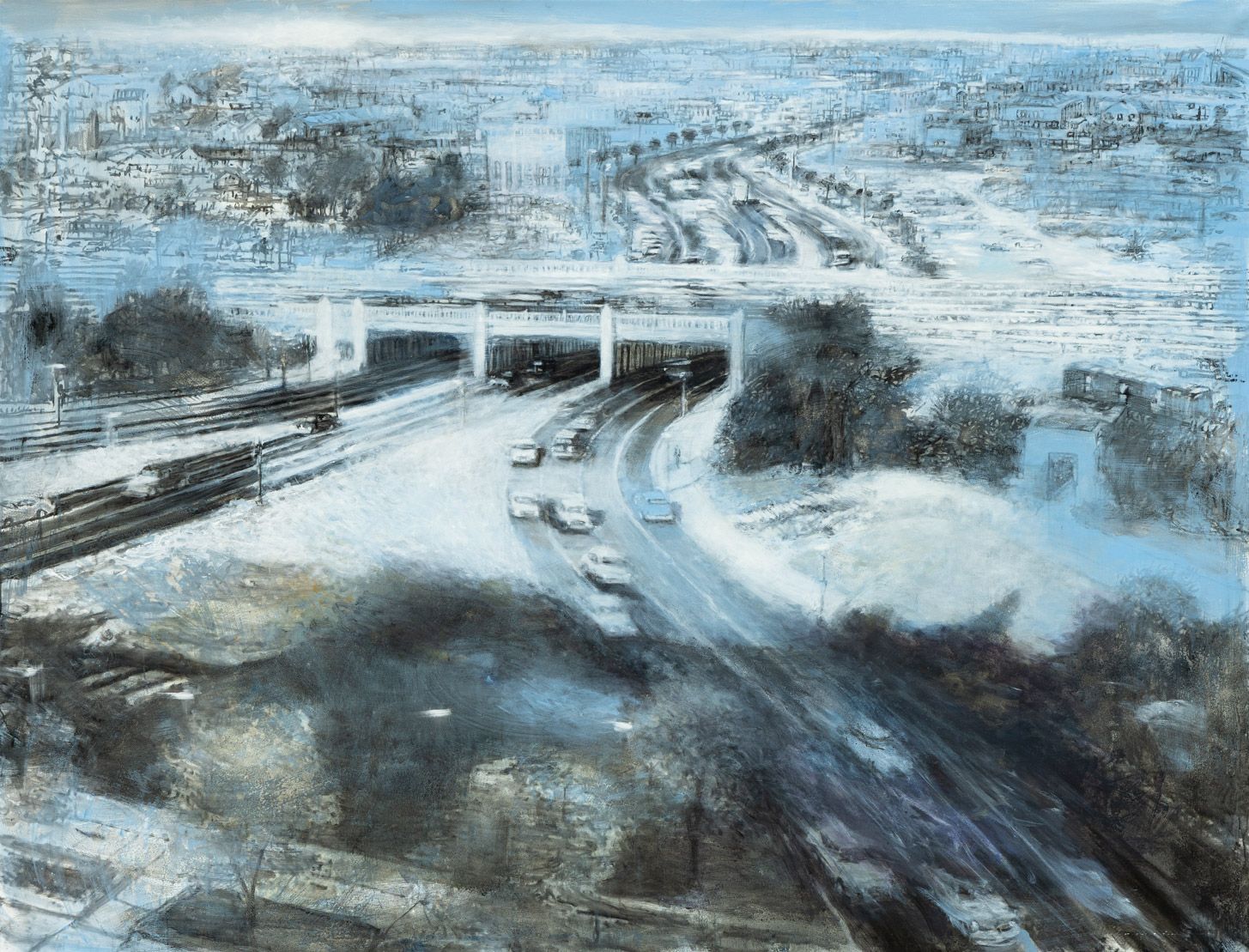Jeg har gennem mange år især rejst til USA og Italien. Disse rejser danner afsæt for mine malerier af urbane landskaber som kan ses på udstillingen ‘Tærskler’. Værkerne er ikke dokumentariske gengivelser, men stemningsmættede fortolkninger—fragmenter af erindring, lys, bevægelse og følelse.